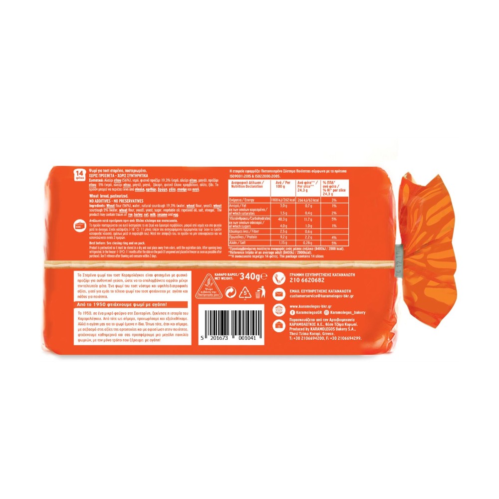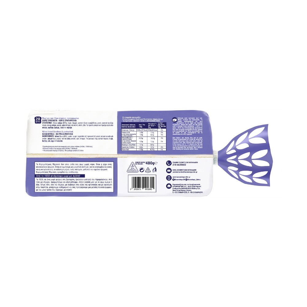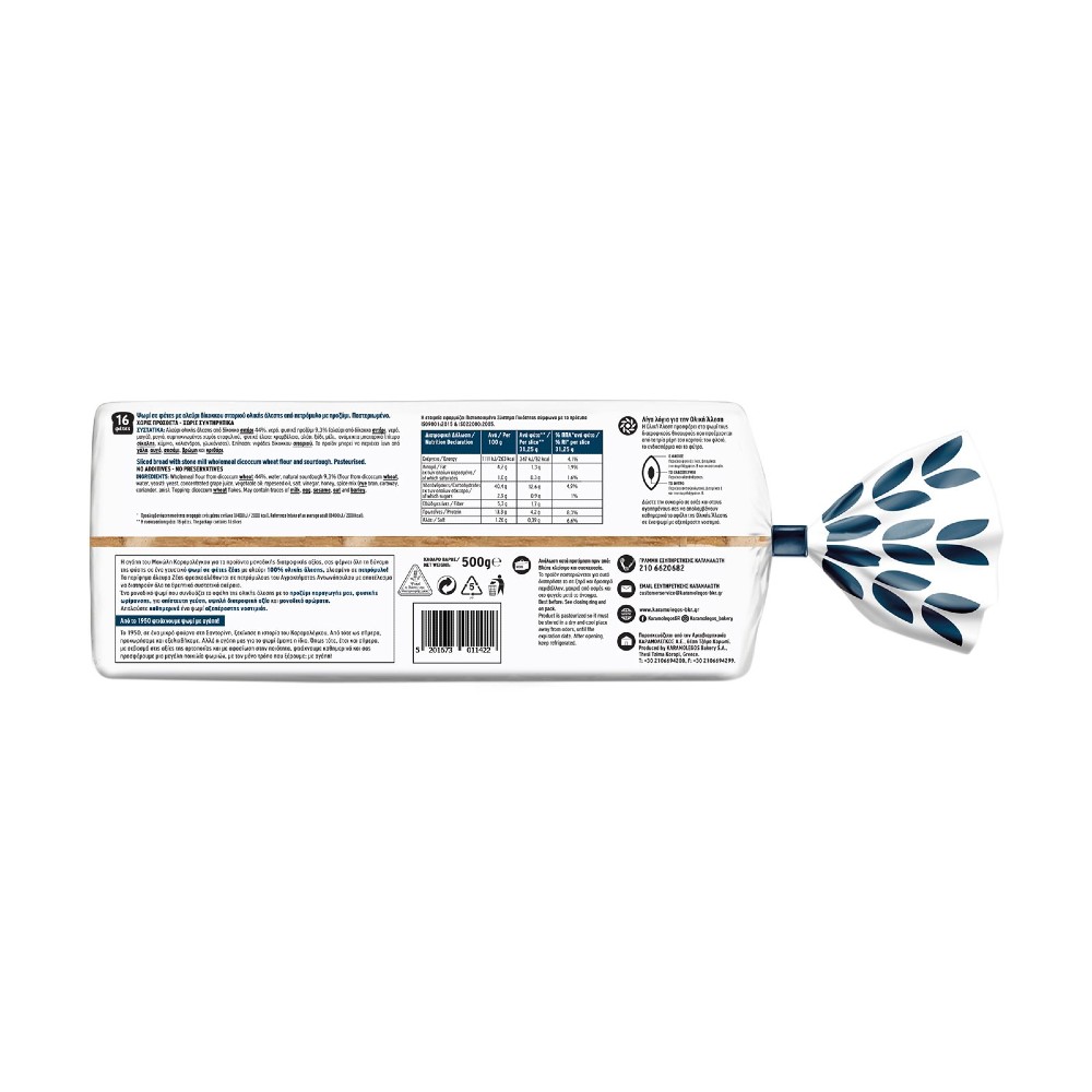 Πληροφορίες Προϊόντος Διατροφική Δήλωση Ανά 100g Ανά φέτα 41,66g Π.Π.Α* Ανά 41,66g Ενέργεια 1136kJ/269kcal 426kJ/101kcal 5% Λιπαρά 5,1g 1,99g 3% εκ των οποίων κορεσμένα 0,6g…