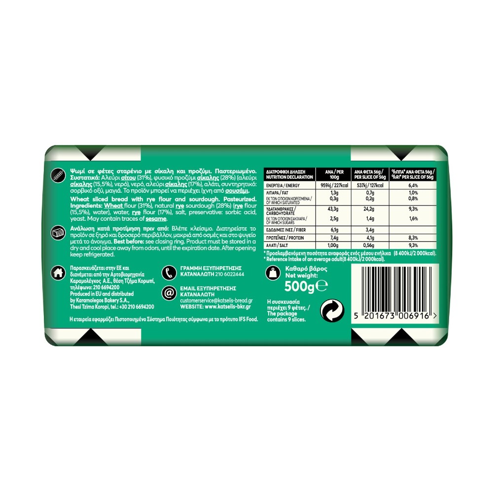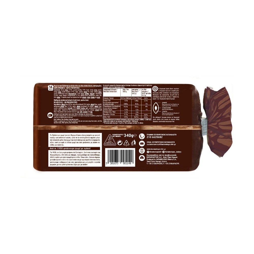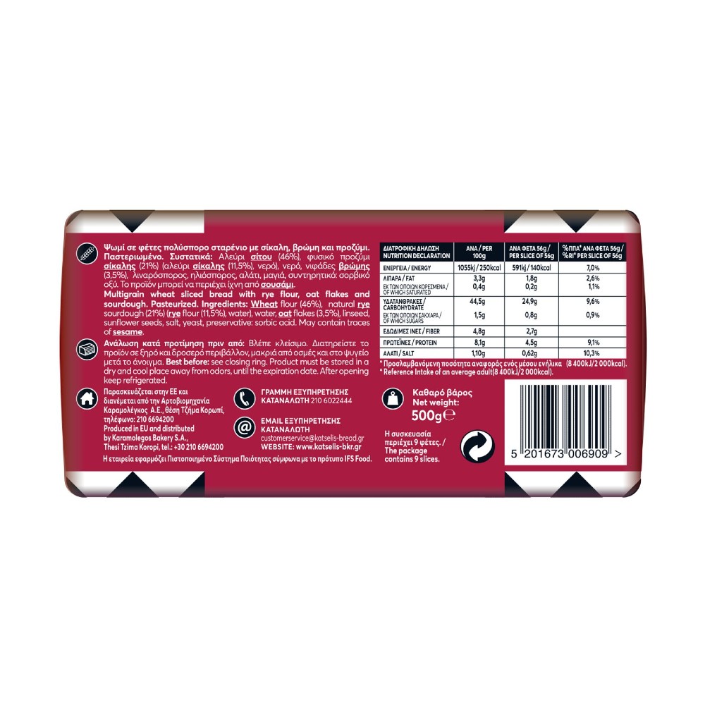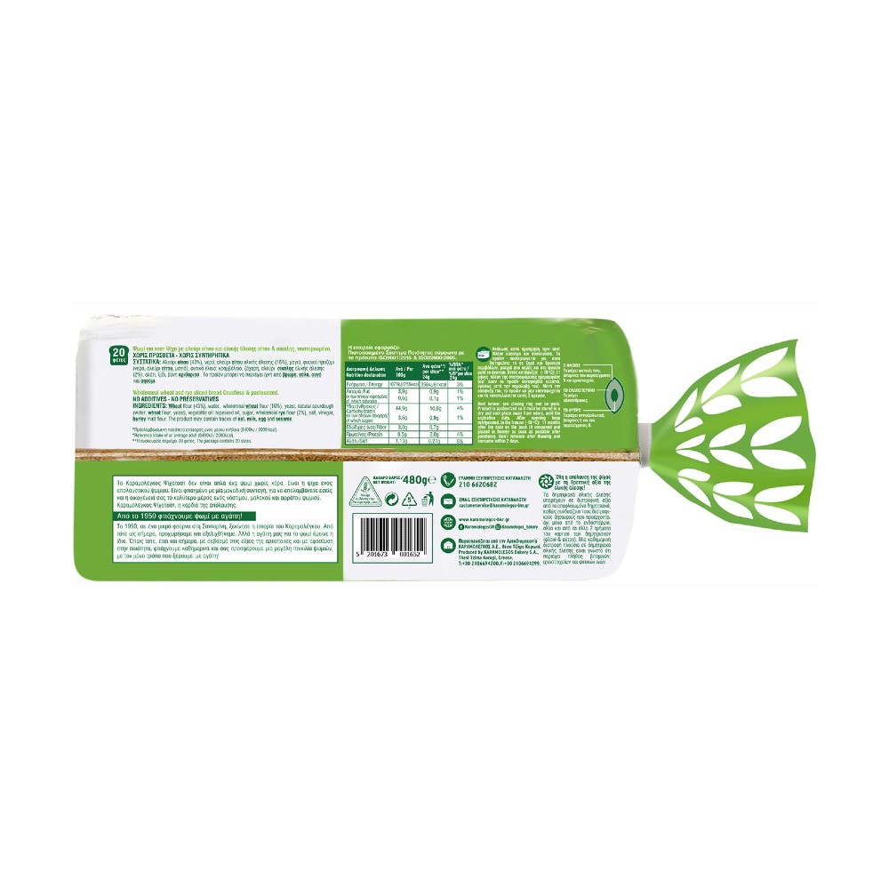 Πληροφορίες Προϊόντος Διατροφική Δήλωση Ανά 100g Ανά φέτα 24g % Π.Π.Α.* ανά φέτα Ενέργεια 1079kJ/255kcal 258kJ/61kcal 3% Λιπαρά 3,9g 0,9g 1% εκ των οποίων κορεσμένα…