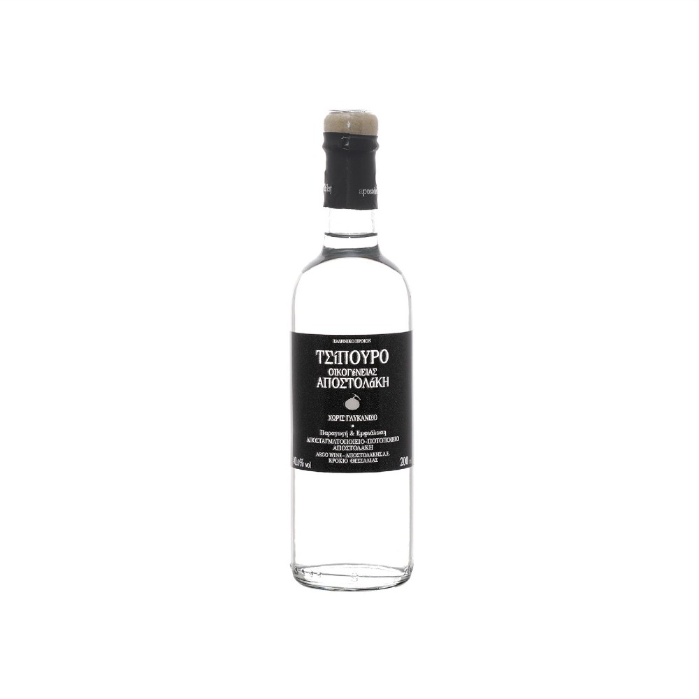 Το τσίπουρο της οικογένειας Αποστολάκη αποστάζεται από στέμφυλα εκλεκτών ποικιλιών της Οικογένειας των Θεσσαλών αποσταγματοτοποιών, εγγυώνται ένα τσίπουρο εξαιρετικής ποιότητας με ελαφριά γεύση και πλούσιο άρωμα, που πίνεται όλες τις ώρες.
