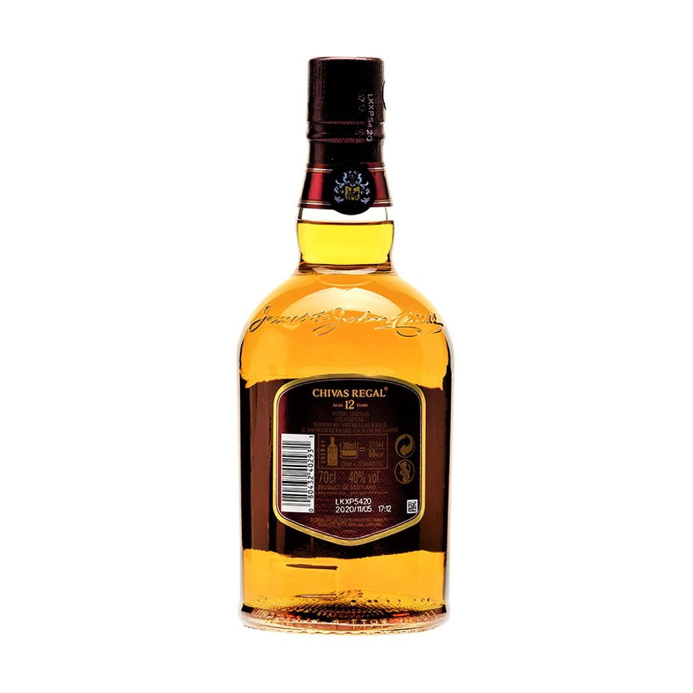 Με φωτεινό, ζεστό, κεχριμπαρένιο χρώμα και μείγμα αρωμάτων από άγρια βότανα και φρούτα, το Chivas Regal 12 ετών είναι δημοφιλές για την κρεμώδη γεύση του, πλούσια σε νότες βανίλιας, φουντουκιού, ώριμων μήλων και μελιού.