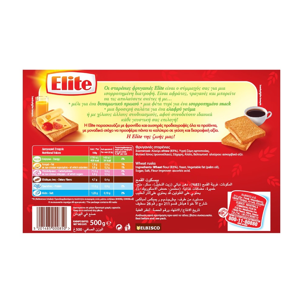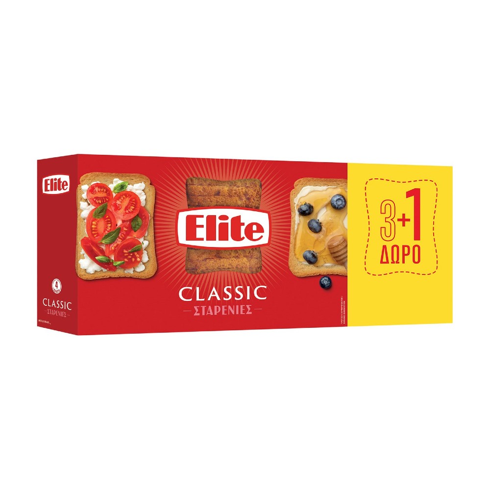 Οι κλασικές φρυγανιές Elite σίτου αποτελούν ένα τραγανό και απολαυστικό snack για κάθε στιγμή της ημέρας.