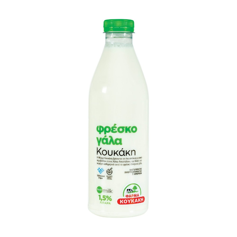 Αγνό, φρέσκο, αγελαδινό, παστεριωμένο, ομογενοποιημένο γάλα, με χαμηλά λιπαρά (1,5%). Συλλέγεται καθημερινά και βρίσκεται άμεσα κοντά σας, πάντα ολόφρεσκο και γευστικό.