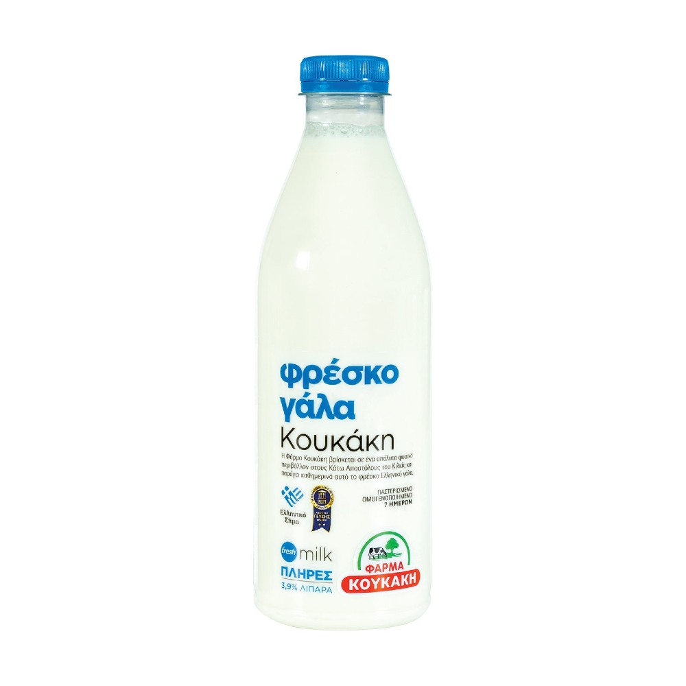 Αγνό, φρέσκο, αγελαδινό, παστεριωμένο, ομογενοποιημένο, πλήρες Γάλα, με 3,9% λιπαρά. Συλλέγεται καθημερινά και βρίσκεται άμεσα κοντά σας, πάντα ολόφρεσκο και γευστικό.
