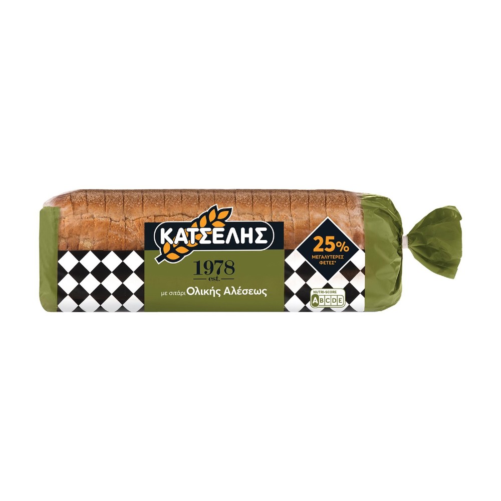 Ψωμί για τοστ ΚΑΤΣΕΛΗΣ με σιτάρι ολικής άλεσης σε συσκευασία με 25% μεγαλύτερες φέτες.